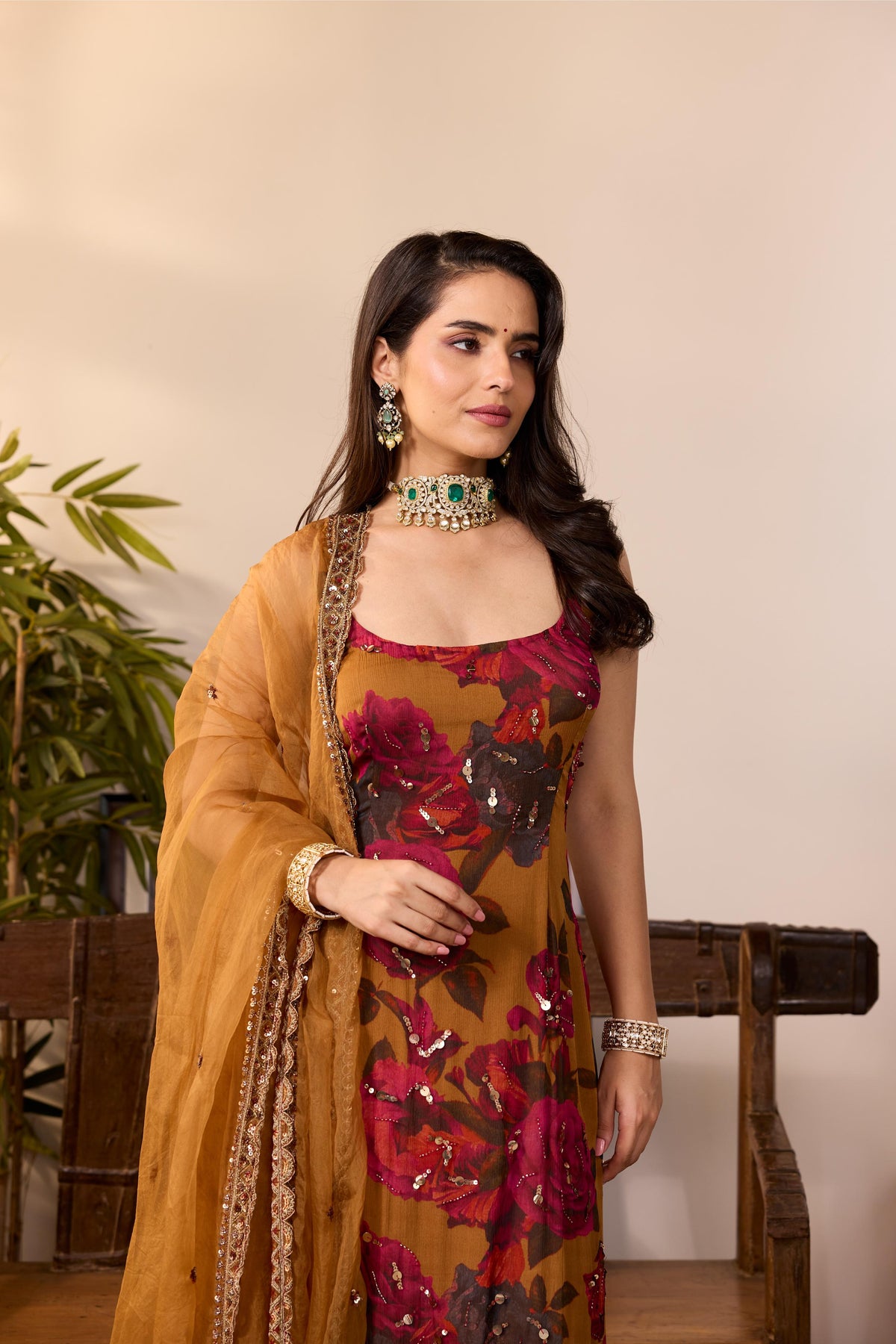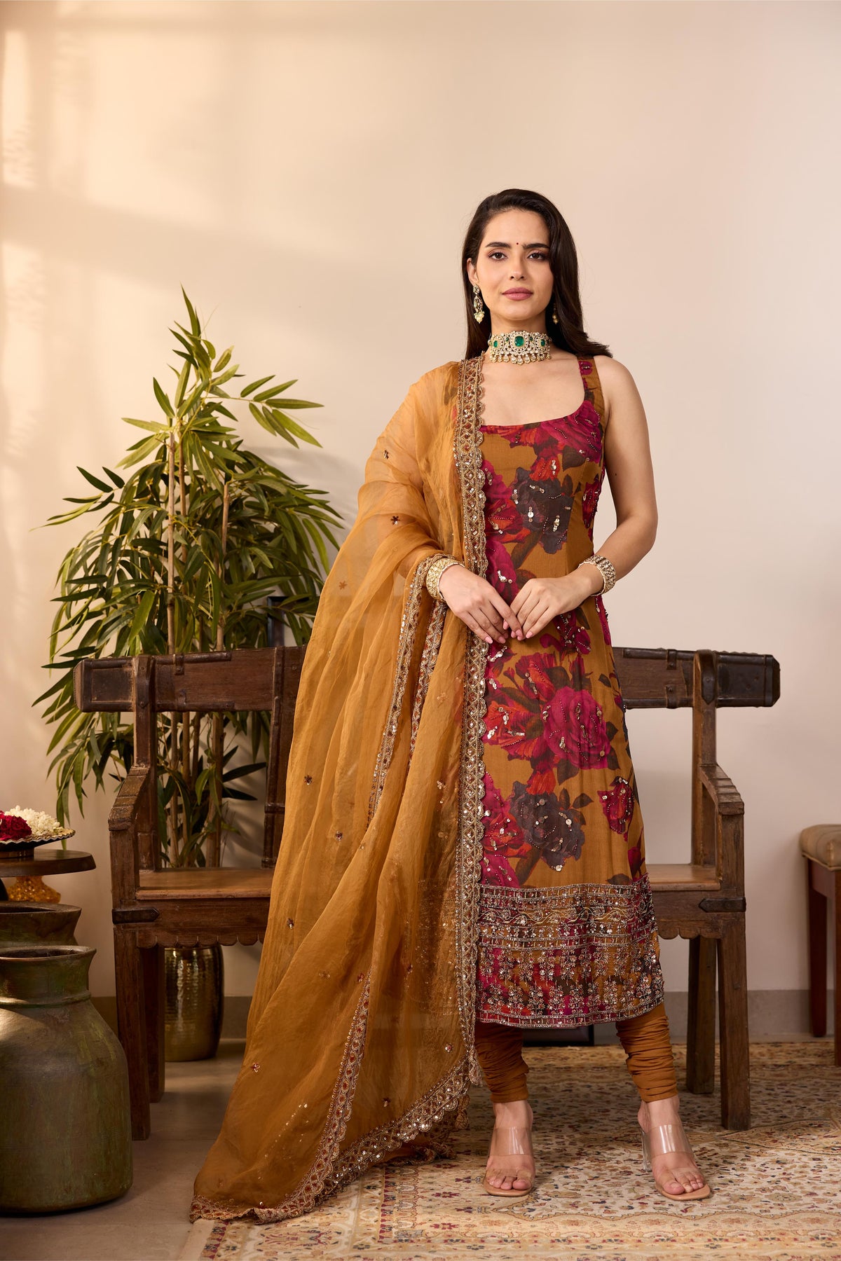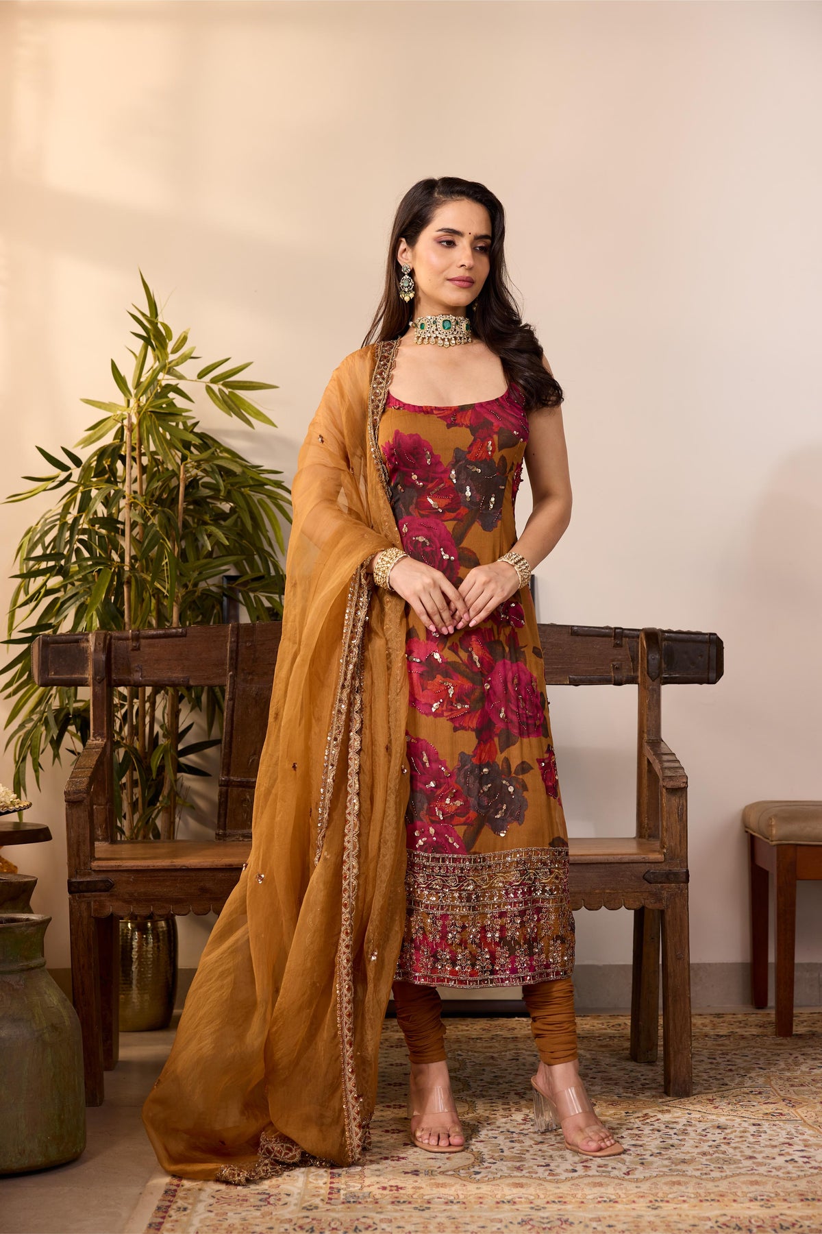 Featuring a Dark Mustard Floral Kurti in Chiffon.